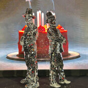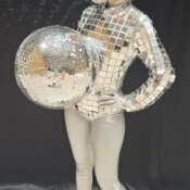 – Hombre y mujer espejo bola disco ‘Mirrormen & Discoball’: figuras humanas hechas de vidrio por un toque moderno y vanguardista.